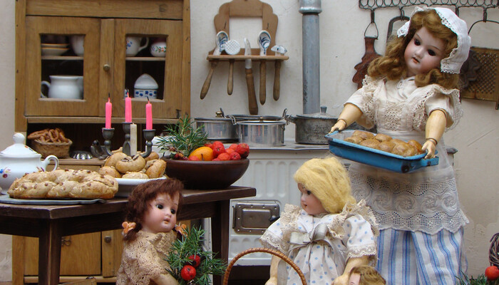 The exhibition of antique toys is without a guide. You can see antique dolls with their suitcases and travel accessories, teddy bears, prams, model rooms, model kitchens, steam engines, building sets, model trains and others. There are a total of over 200 exhibits.